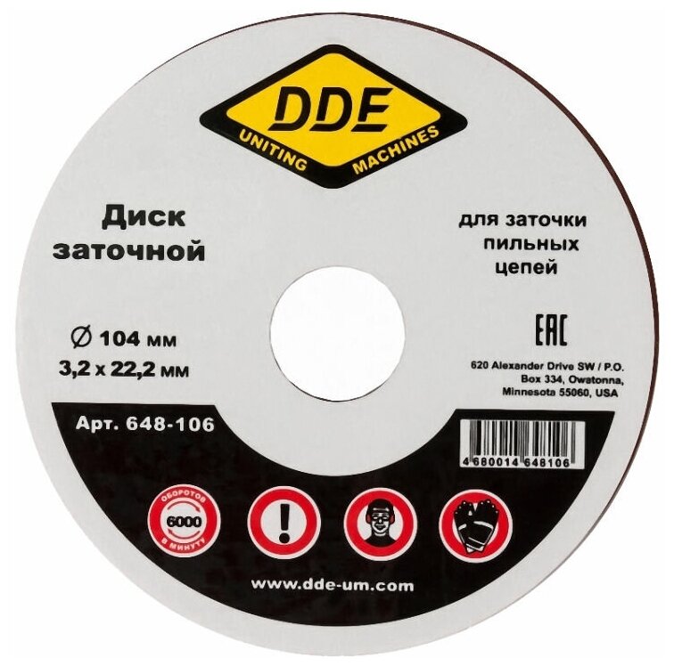 Grinding disc 104x3.2x22.2 mm for chain 3/8PM, 0.325, 1/4 DDE 648-106 15536671
