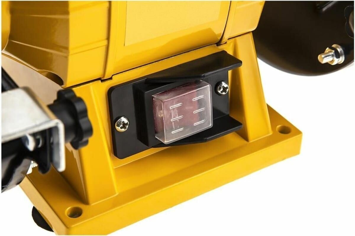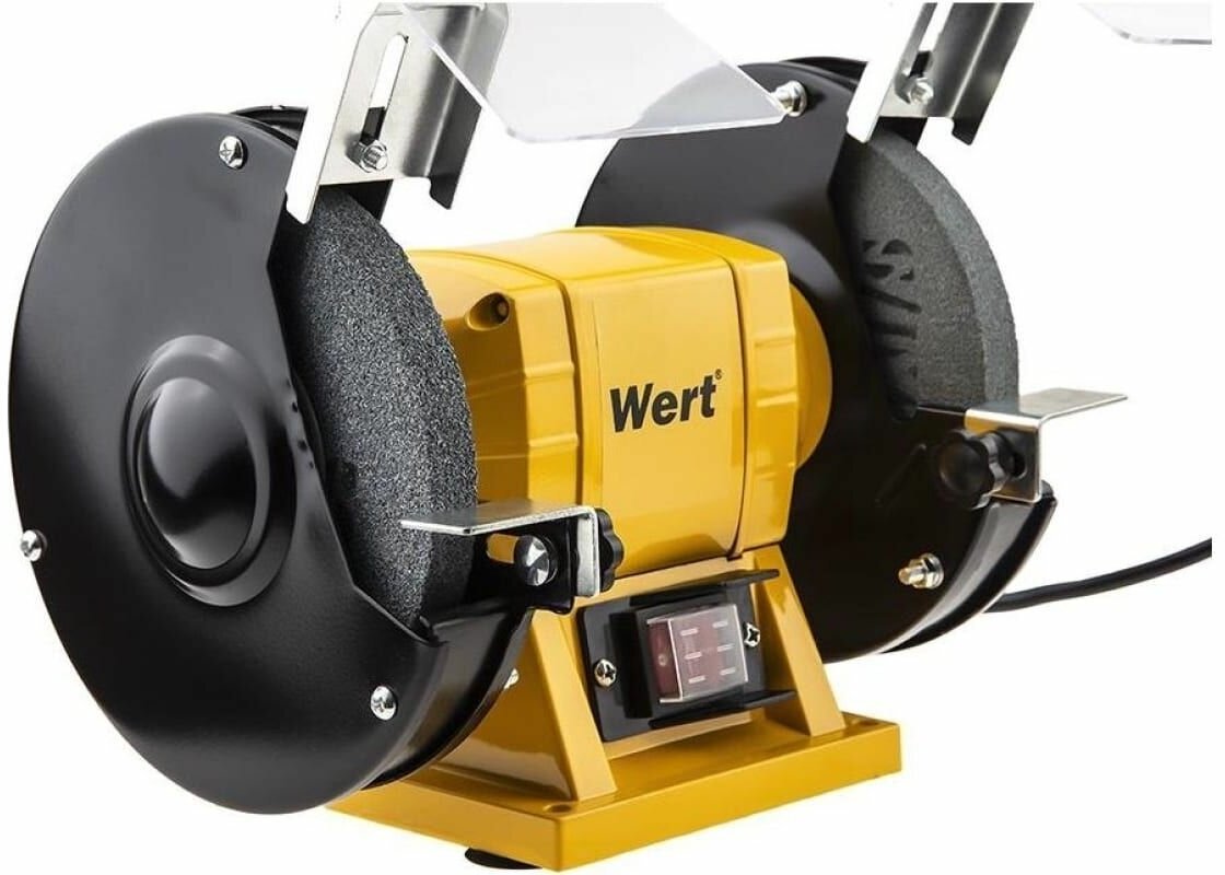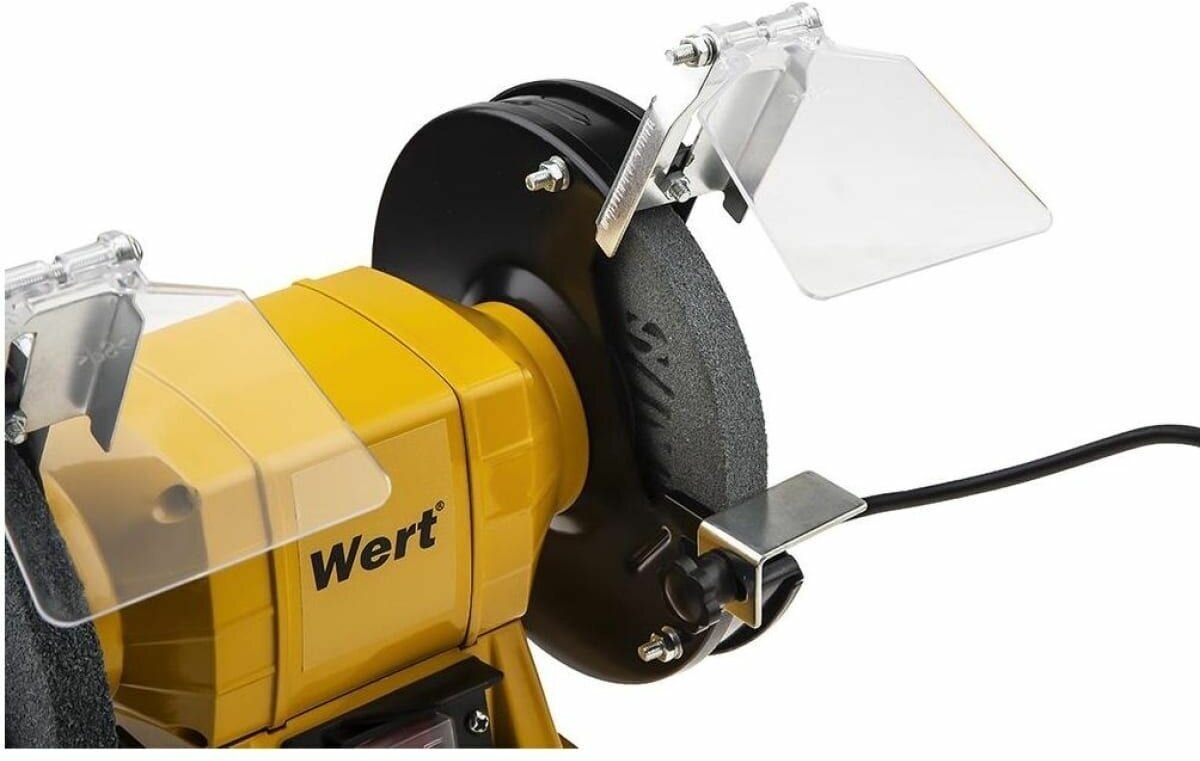 Equipment: grinding machine - 1 pc., grinding wheels - 2 pcs., protective screens - 2 pcs., stops - 2 pcs., adapter bushings for a circle with a fit of 32 mm - 2 pcs., documentation; weight - 5 kg