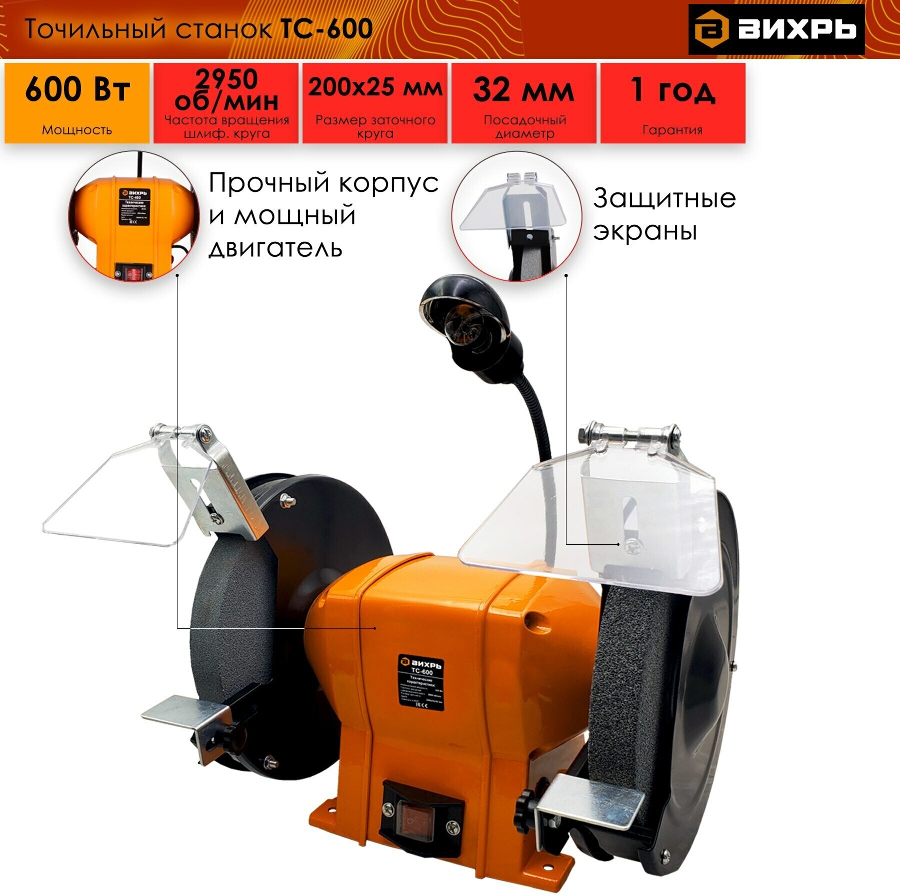 Motor power: 600 W, tool type: universal, seat diameter: 32 mm, grinding wheel diameter: 200 mm, wheel thickness: 25 mm, maximum speed: 2950 rpm
