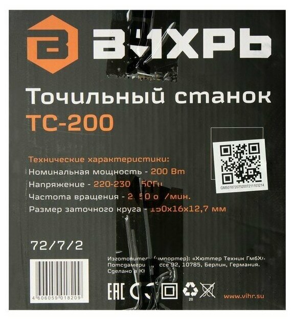 Motor power: 200 W, tool type: tools, seat diameter: 12.70 mm, grinding wheel diameter: 150 mm, wheel thickness: 16 mm, minimum speed: 3000, maximum speed: 3000 rpm