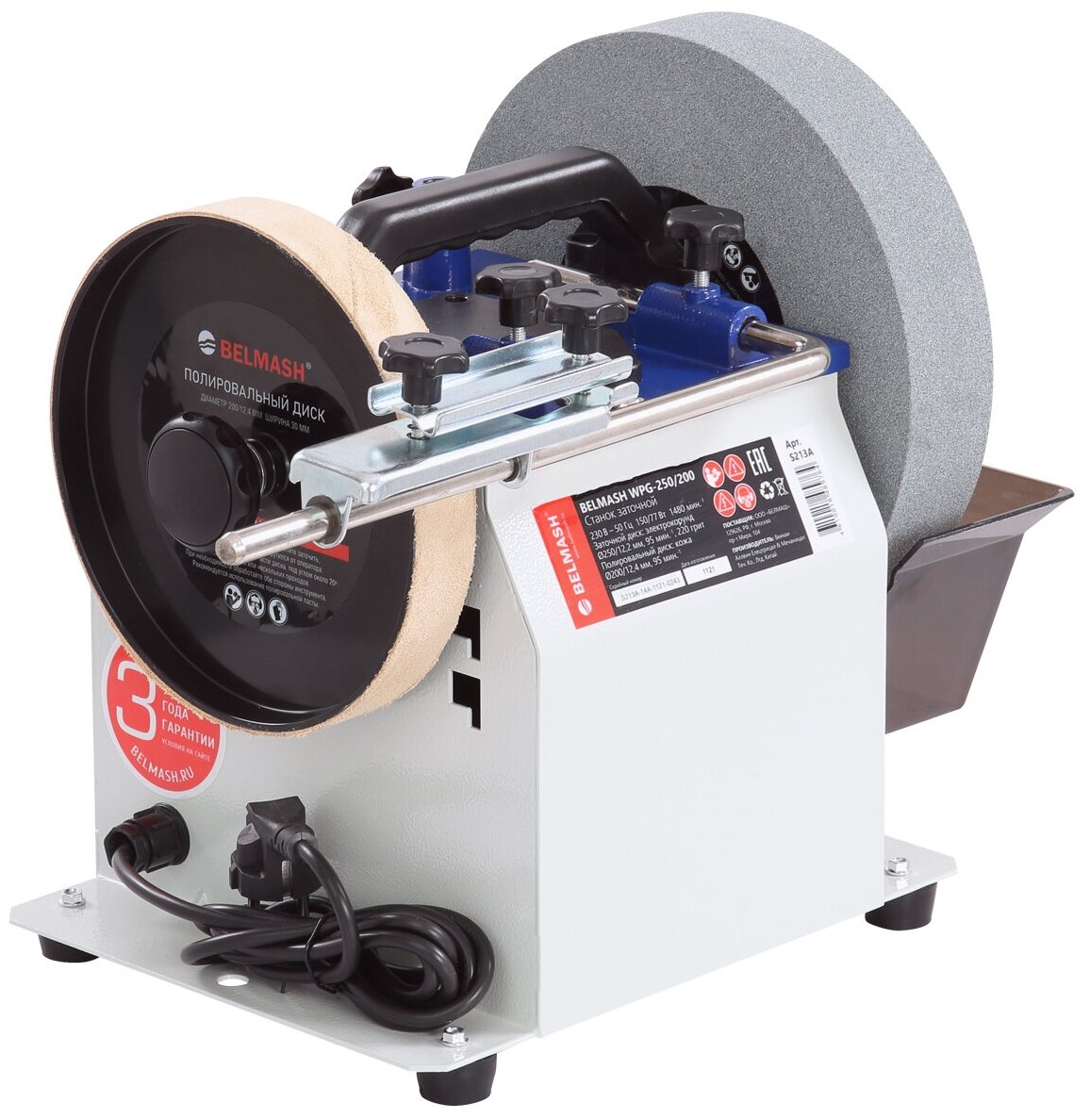 Motor power: 150 W, tool type: knives and scissors, grinding wheel diameter: 250 mm, wheel thickness: 50 mm, maximum speed: 1480 rpm