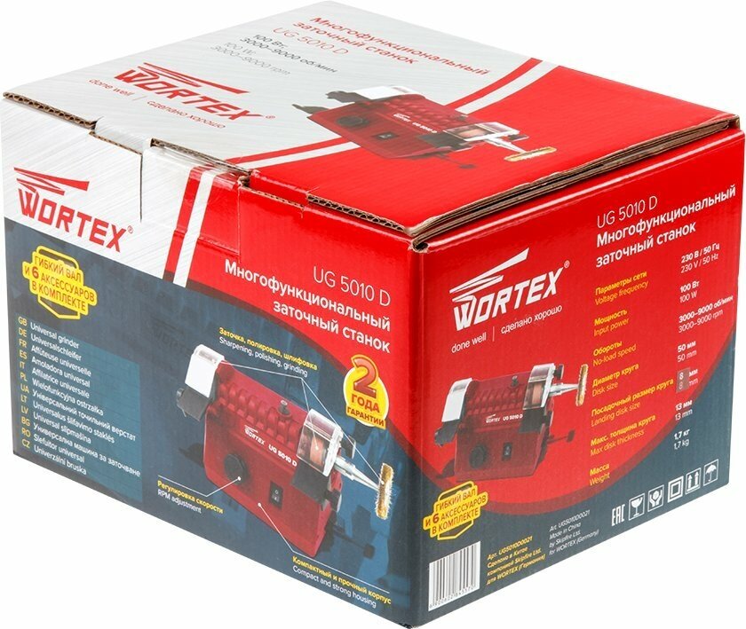 Multifunctional grinding tool WORTEX UG 5010 D in box 100 W, circle 51x8x13 mm, 3000-9000 rpm + accessories included UG5010D0021