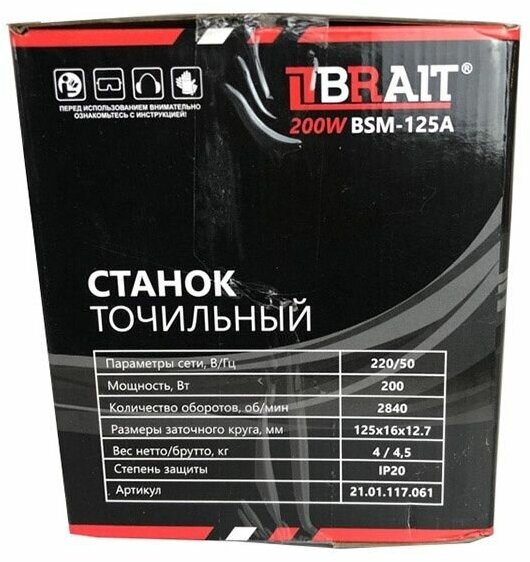 Grinding machine BSM-125A with lamp Power 200W, grinding wheel size 125x16x12.7, speed 2840 rpm