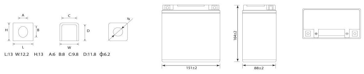 Battery technology: gel, capacity: 16 Ah, starting current: 235 A, voltage: 12 V, polarity: straight, size: 150x87x161, features: electrolyte included, weight: 3.05 kg