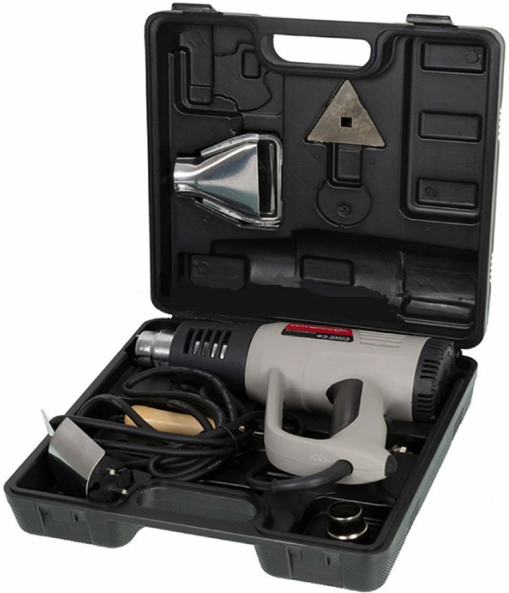 Description: Power: 2000 W, purpose: wire insulation, paint drying, pipe defrosting, coating softening, plastic welding, tile welding, paint removal, solder removal, temperature control: stepless, adjustable