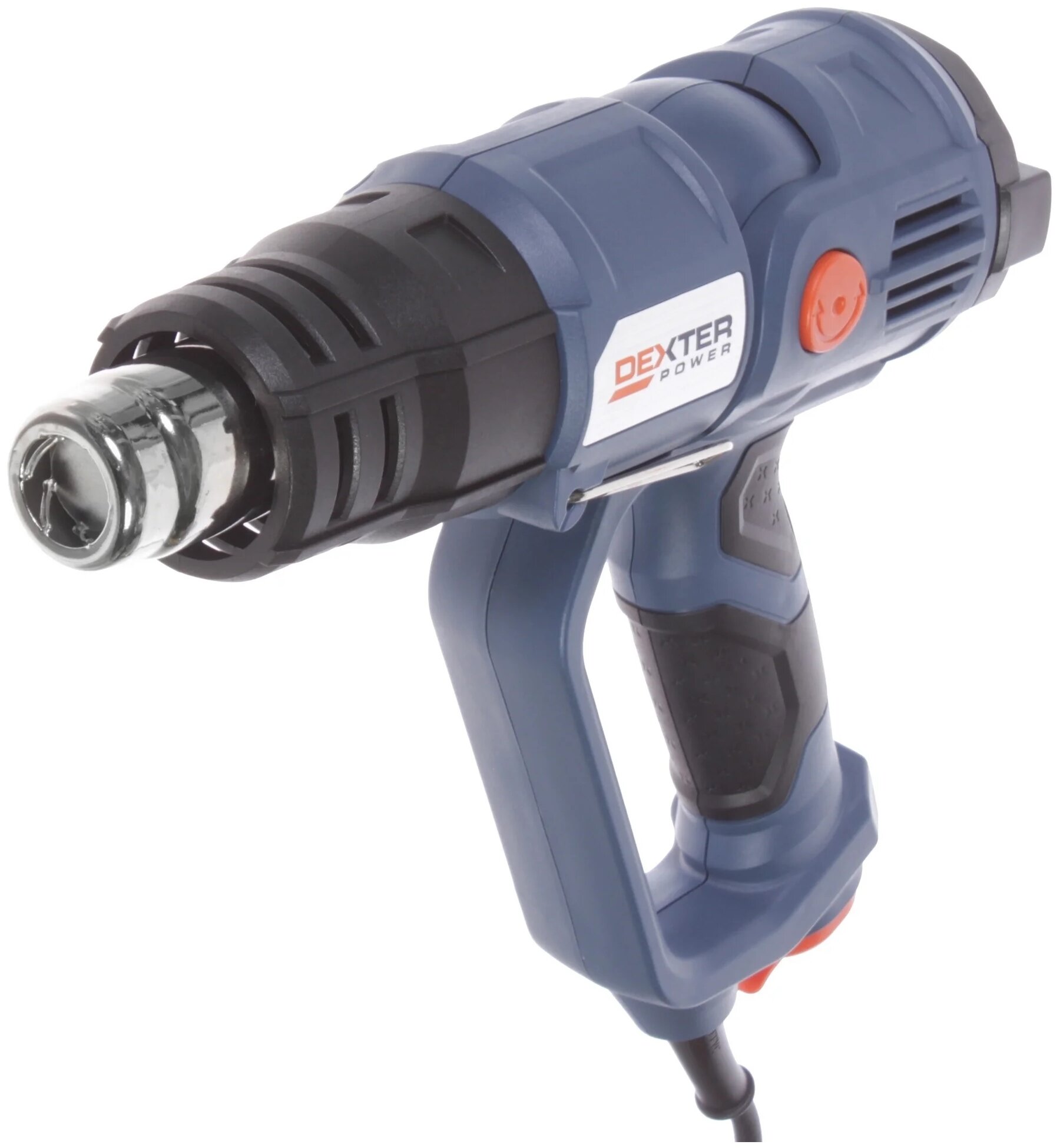 Safety class 2; flat nozzle with a visor 77 mm, reduction nozzle 20 mm, reflector nozzle 40 mm, reduction nozzle cut 28 mm; cable length 3 m; heating from 50 ˚С to 650 ˚С in steps of 10 ˚С; foldable stand