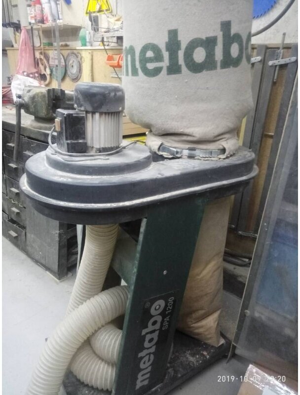 Power: 550 W, air consumption: 15 m³/min, number of suction holes: 1, nozzle diameter: 100 mm, number of dust bags: 1, type of chips: wood