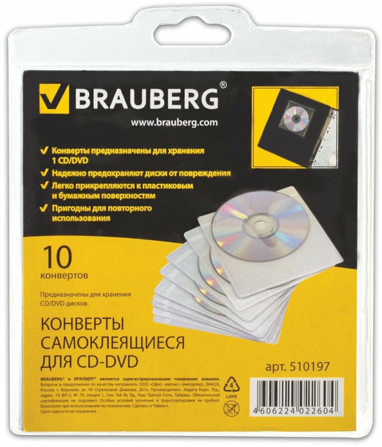Type: envelope, purpose: CD, DVD, capacity: 1 pieces, features: transparency