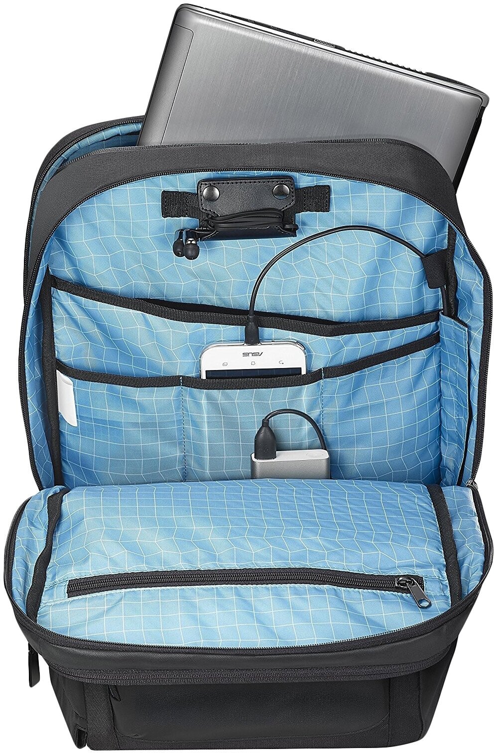 Anti-theft, outer pocket, trolley-mountable, water resistant, key clip, bottle pocket, phone pocket, organizer compartment, shoulder strap