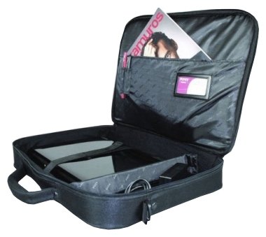 External pocket, organizer compartment, shoulder strap, fastening strap