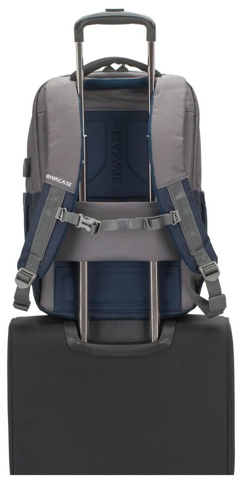 External pocket, trolley attachment, water protection, key clip, organizer compartment