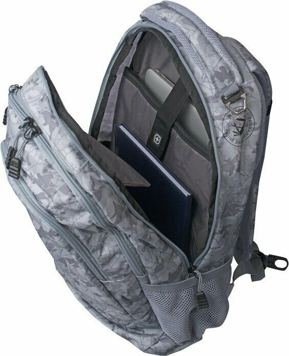 Outer pocket, bottle pocket, phone pocket, organizer compartment, shoulder strap