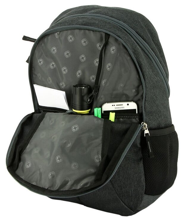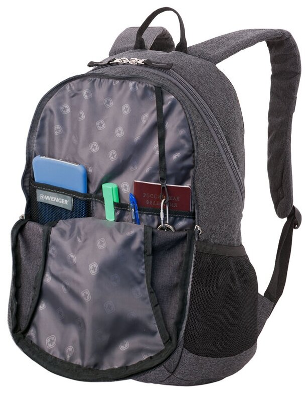 Exterior pocket, bottle pocket, phone pocket, organizer compartment