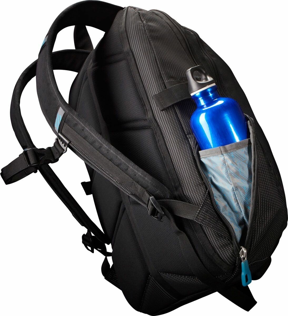 Outside pocket, water resistant, bottle pocket, phone pocket, organizer compartment, shoulder strap