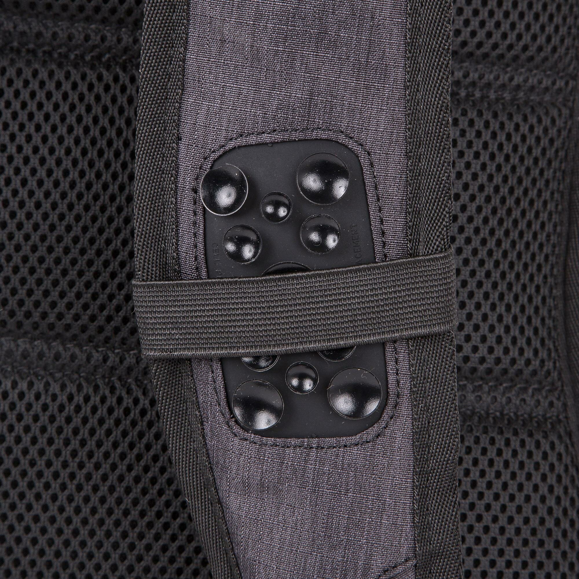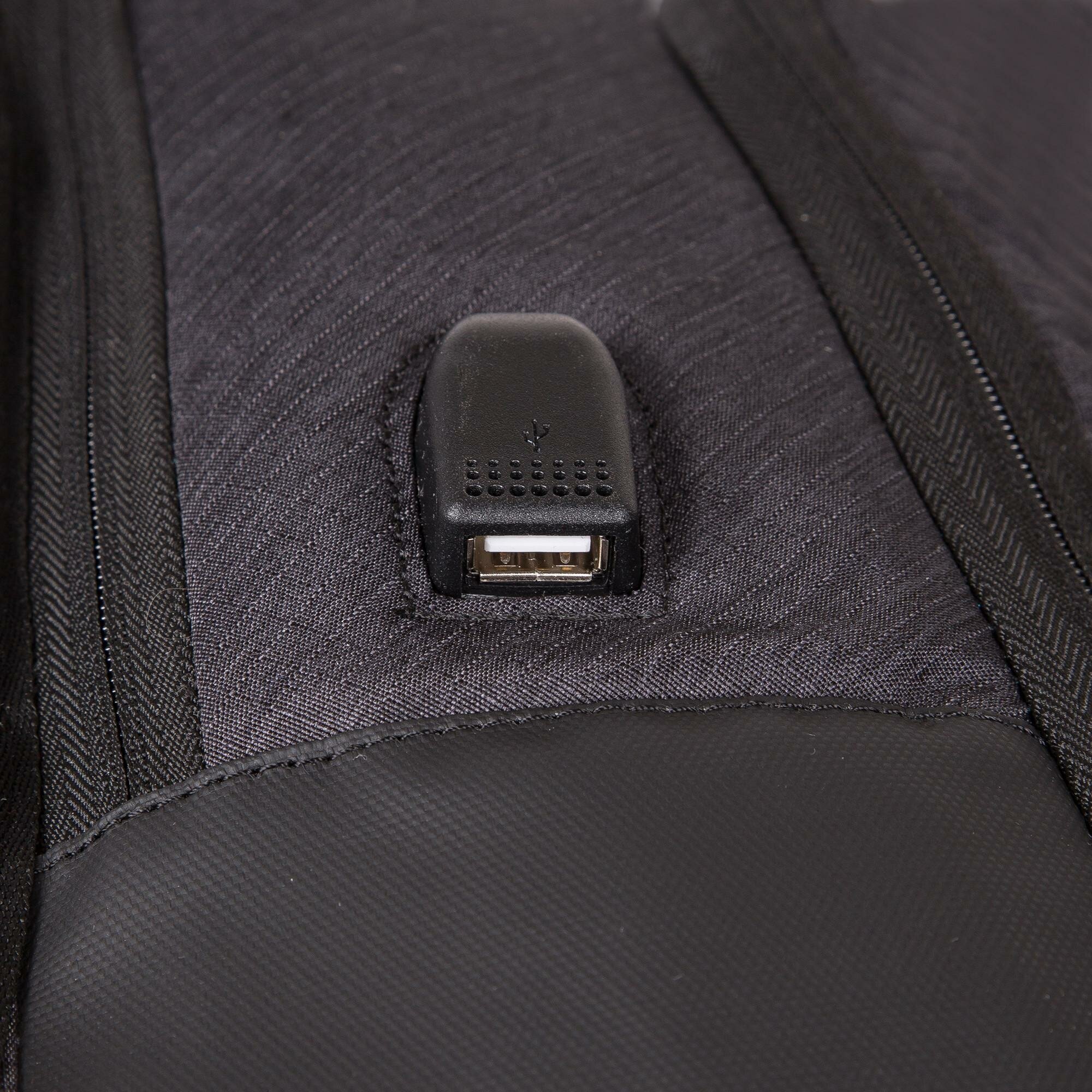 External pocket, water protection, organizer compartment, fastening strap