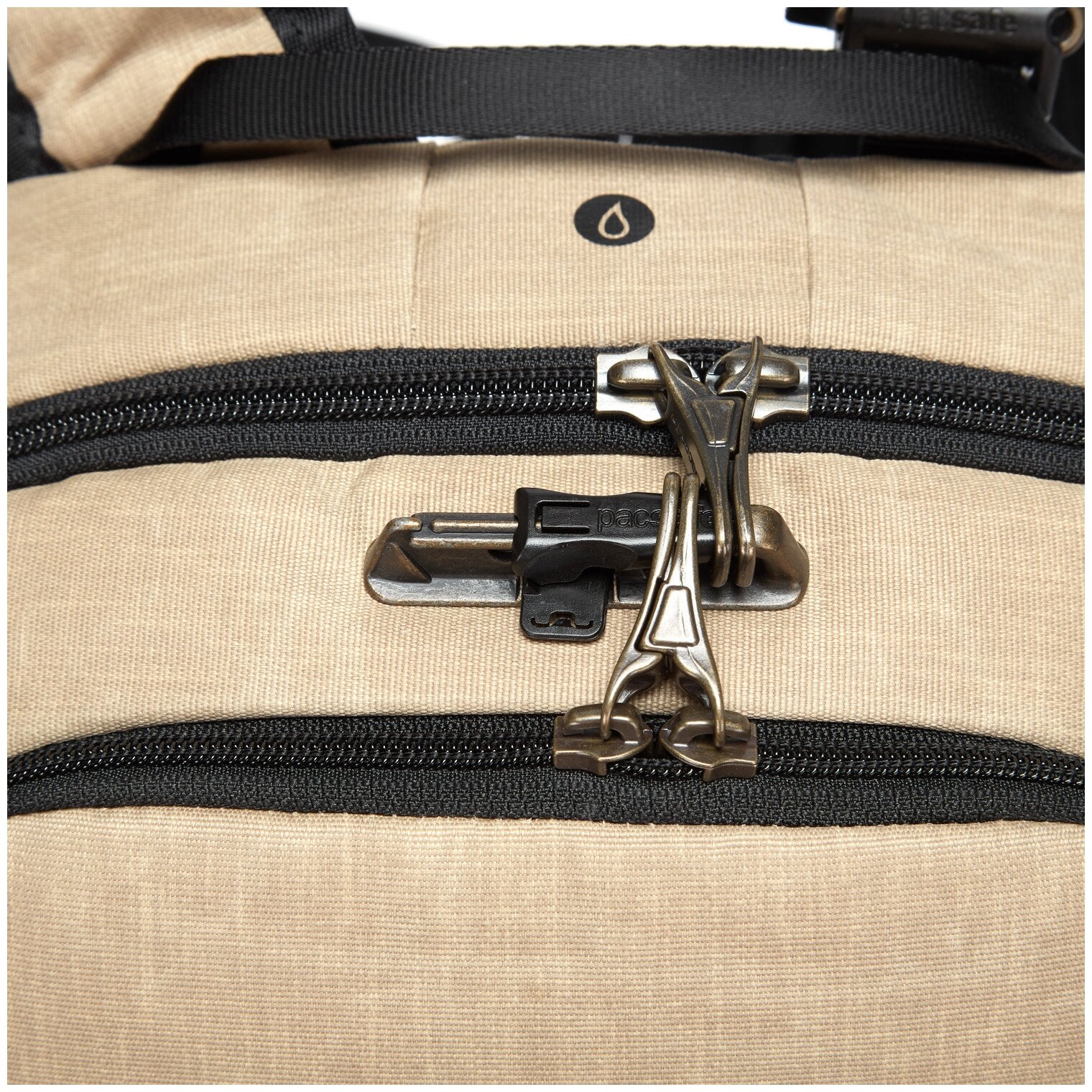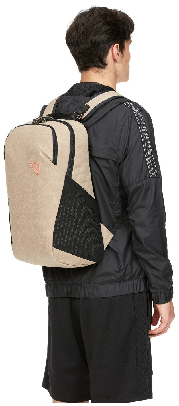 Fits 13" laptop; front pocket; side pockets; chest drawstring