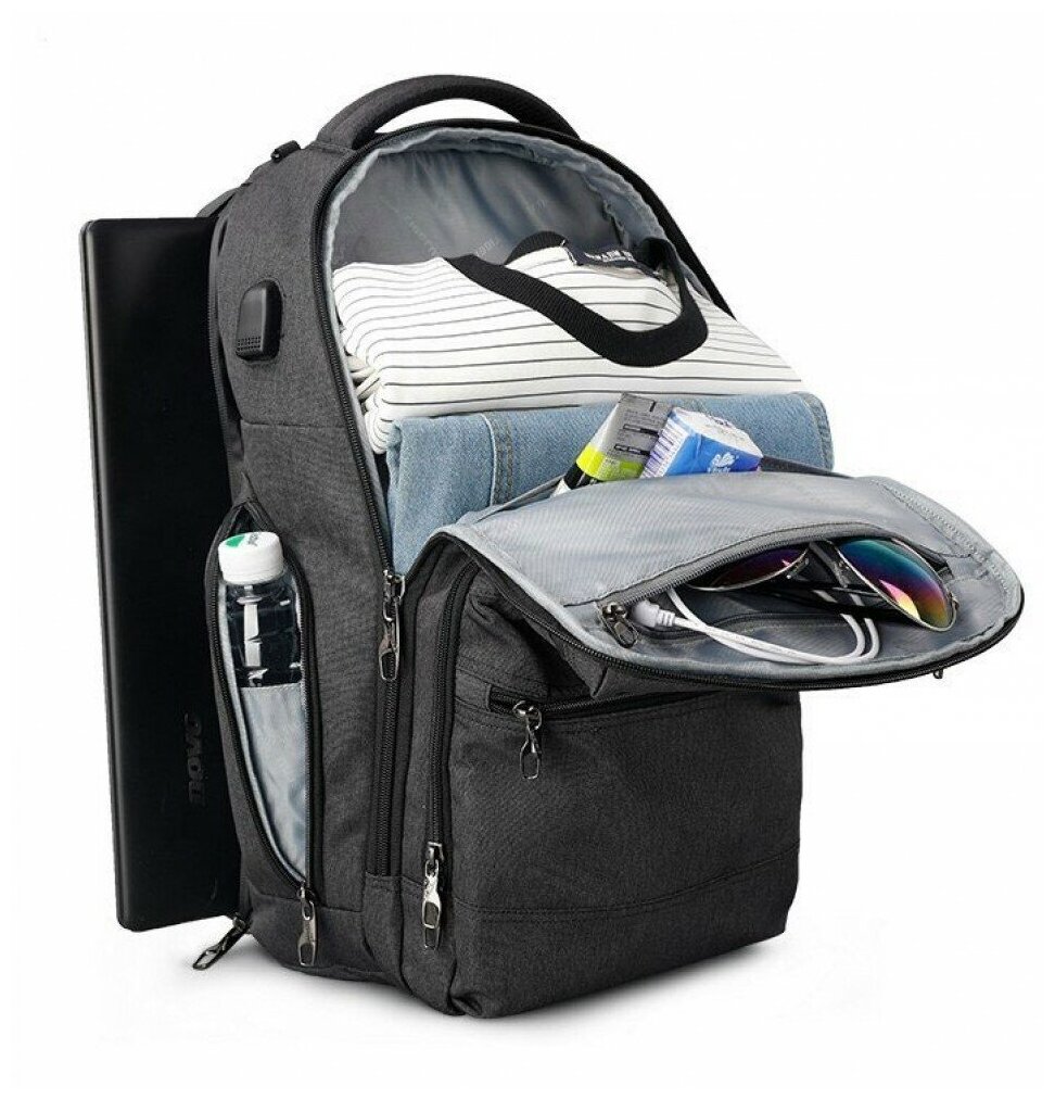 Anti-theft, external pocket, trolley attachment, key clip, bottle pocket, phone pocket, organizer compartment, shoulder strap