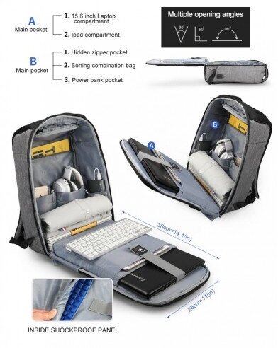 Volume: 20 l, built-in USB port, secret pocket on the back
