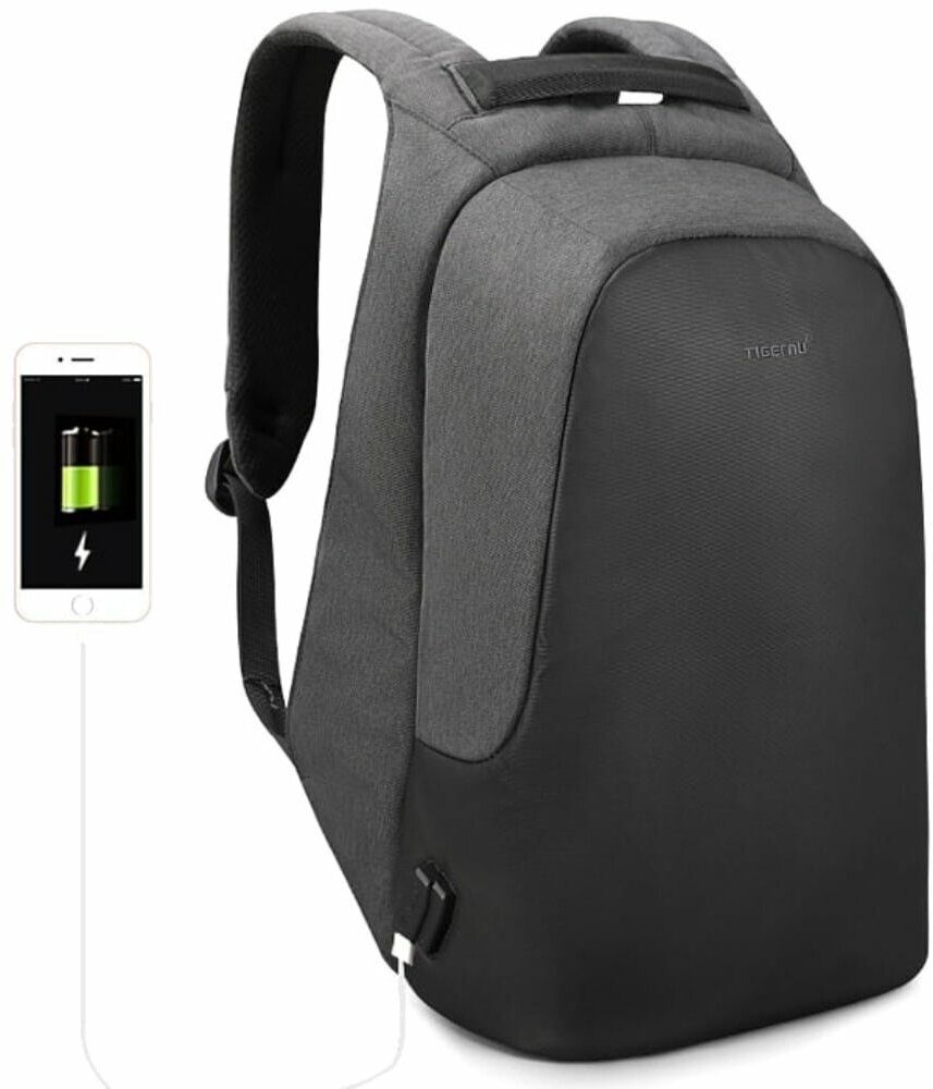 Anti-theft, outer pocket, trolley mountable, water resistant, bottle pocket, hole for headphone cord, lanyard