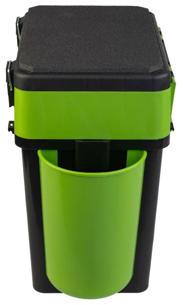Type: box, purpose: for fishing, number of compartments: 5 pcs., features: waterproof, cover-seat, shoulder strap, number of levels: 2, material: plastic