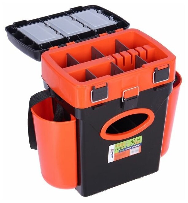 Type: box, purpose: for fishing, for ice fishing, features: rigid construction, shoulder strap, number of levels: 2, material: plastic