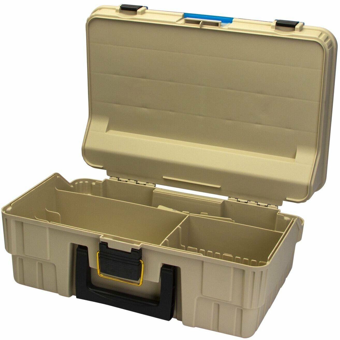 Type: box, purpose: for fishing, number of compartments: 18 pcs., features: rigid construction, adjustable cells, number of levels: 2, material: plastic, ABS plastic