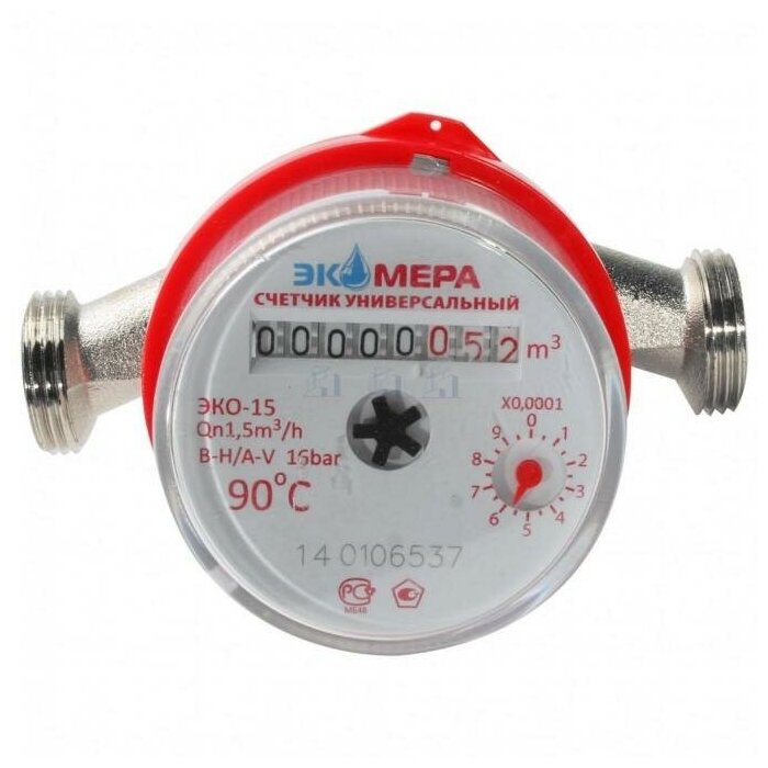 Type: universal meter, connection type: thread, connection diameter: ½", installation length: 110 mm, body material: brass, maximum operating pressure: 16 bar, meter type: vane, flowmeter type: tachometric