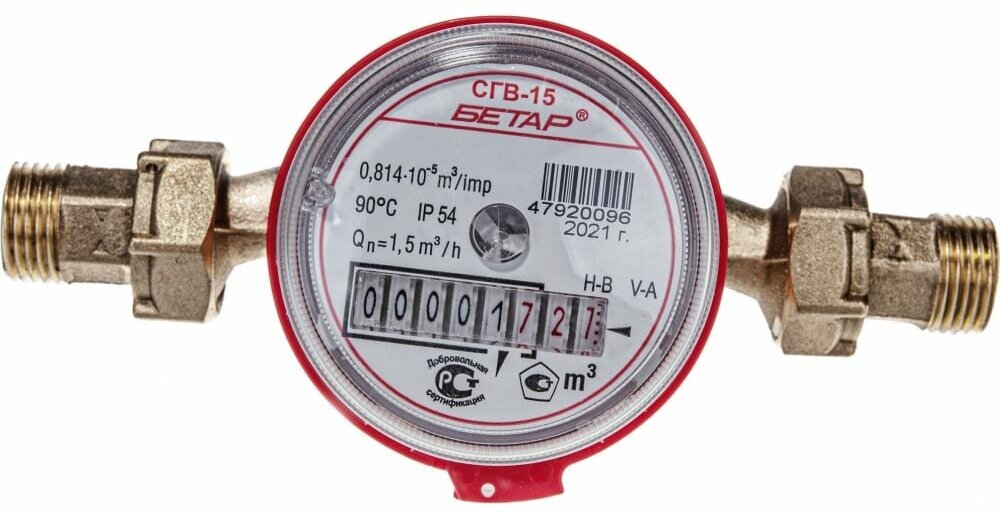 Type: universal meter, connection type: thread, connection diameter: ½", installation length: 110 mm, body material: brass, maximum operating pressure: 10 bar, meter type: vane