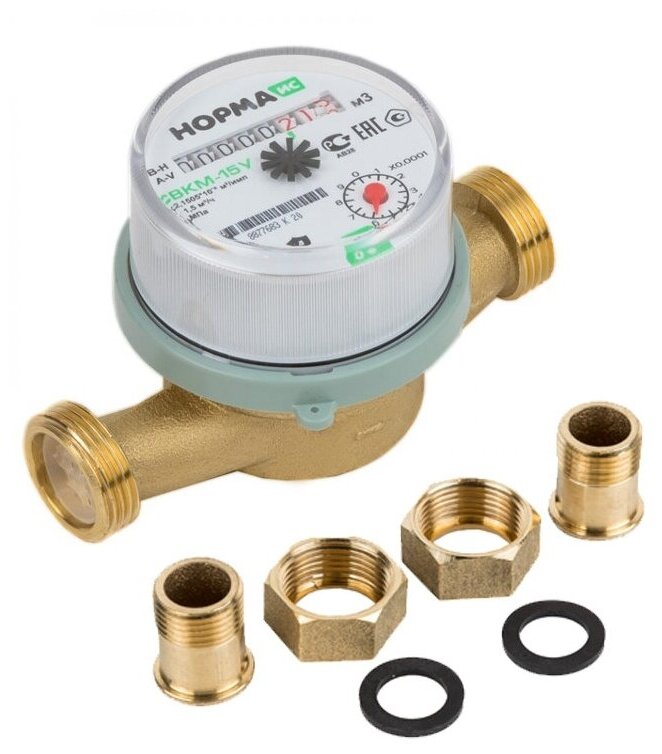 Type: universal meter, connection type: thread, connection diameter: ½, installation length: 110 mm, body material: brass, maximum operating pressure: 10 bar, meter type: vane
