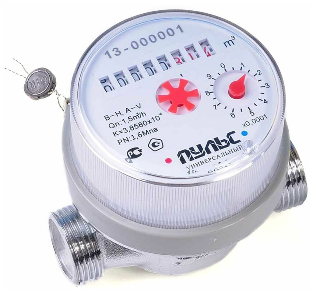 Type: universal meter, Candlestick, connection type: thread, connection diameter: ¾", installation length: 80 mm, body material: plastic, maximum operating pressure: 16 bar, meter type: vane