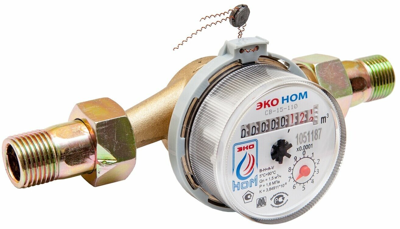 Type: universal meter, connection type: thread, connection diameter: ½", installation length: 110 mm, body material: brass, maximum operating pressure: 16 bar, meter type: vane