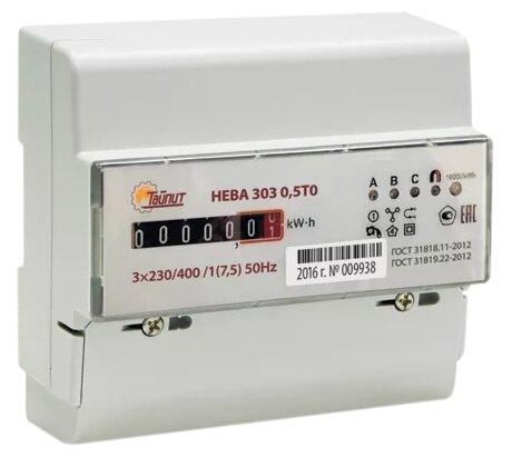Meter type: single tariff, number of tariffs: 1, network type: three-phase, operating principle: electromechanical, number of phases: 3, Voltage, V: 220-240, connection type: three-wire, four-wire, connection principle: h