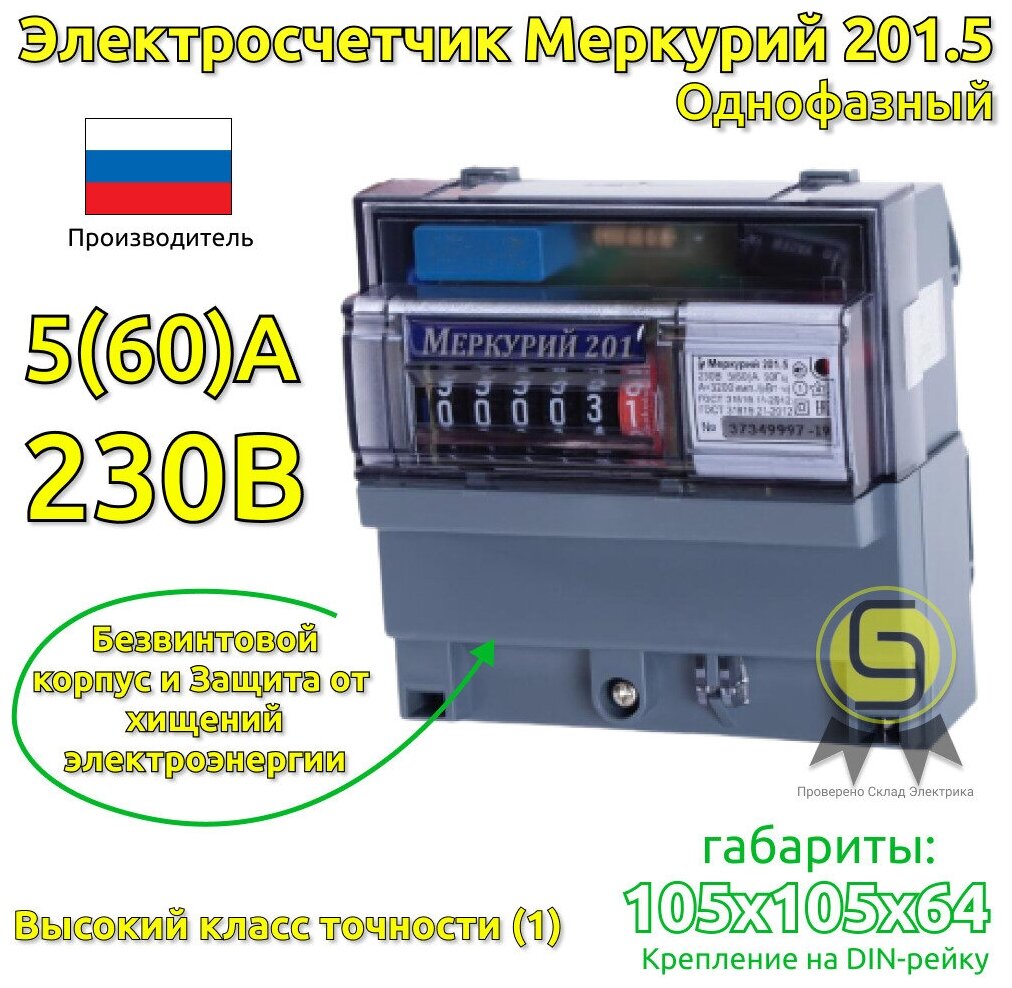 Meter type: single-tariff, number of tariffs: 1, accuracy class: 1.0, network type: single-phase, principle of operation: electromechanical, number of phases: 1, Voltage, V: 220-240, 220-230, connection type: two-wire, three-wire, etc.