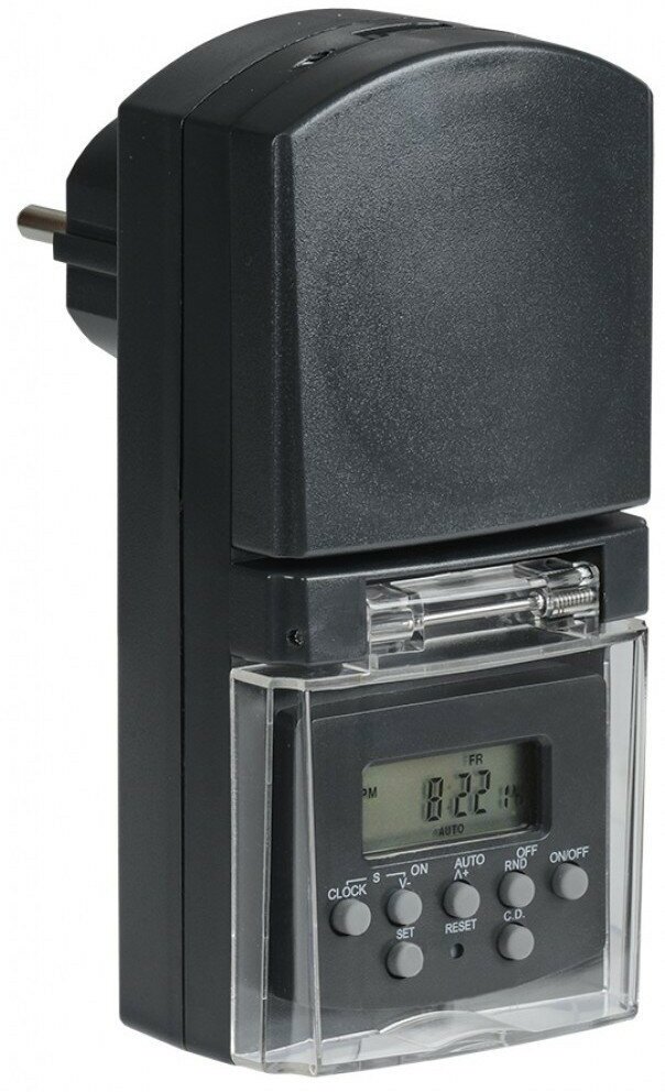 Socket-timer, number of channels: 1, timing: electronic, maximum load current: 16 A, maximum load power: 1800 W, installation method: open installation, IP44