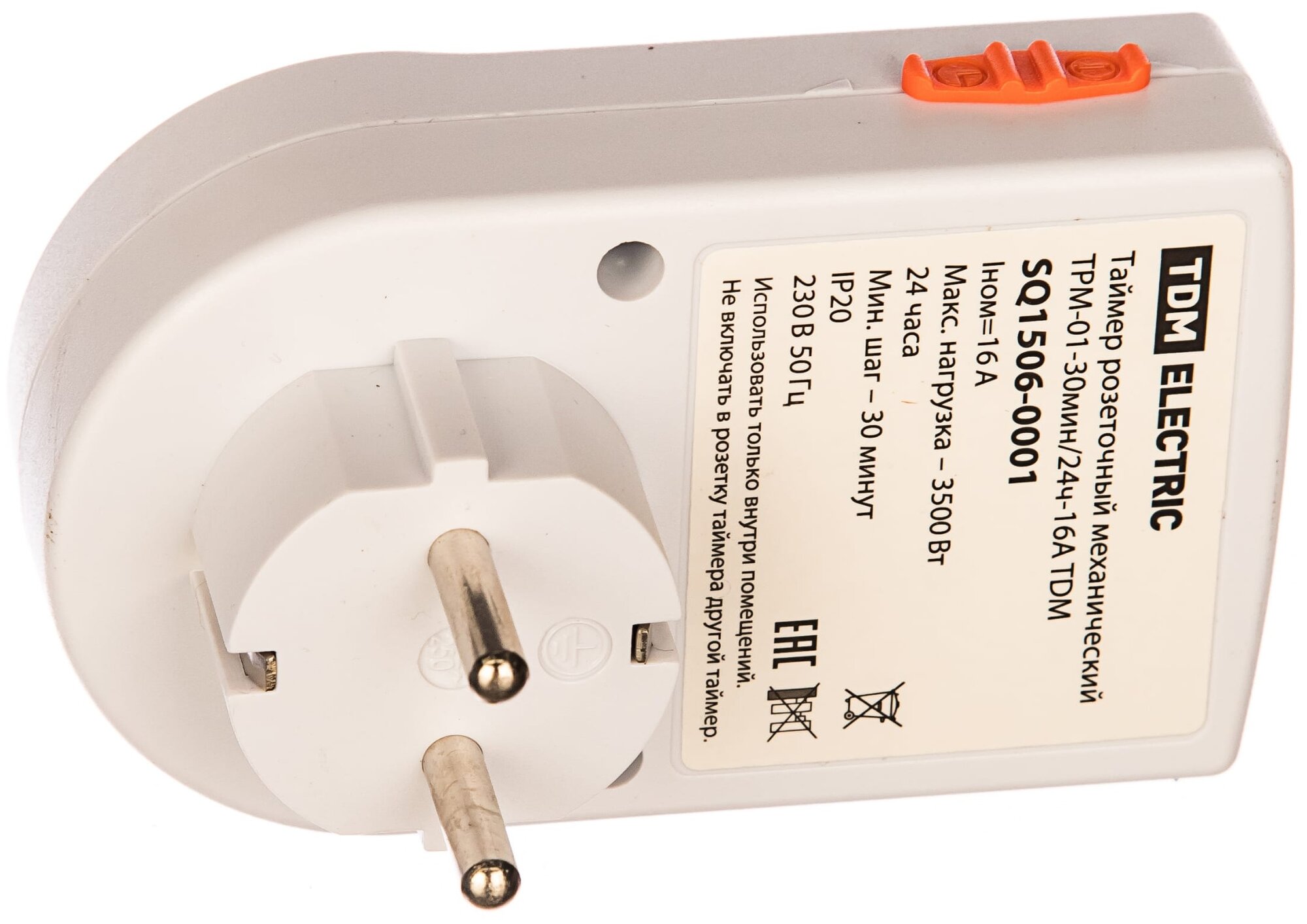 Socket-timer, number of channels: 1, timing: mechanical, maximum load current: 16 A, maximum load power: 3500 W, installation method: open installation, IP20