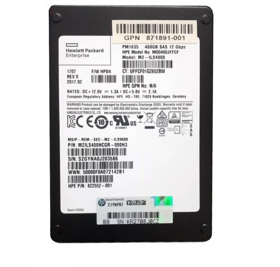 Form factor: 2.5, capacity: 400 GB, purpose: server, interfaces: SAS
