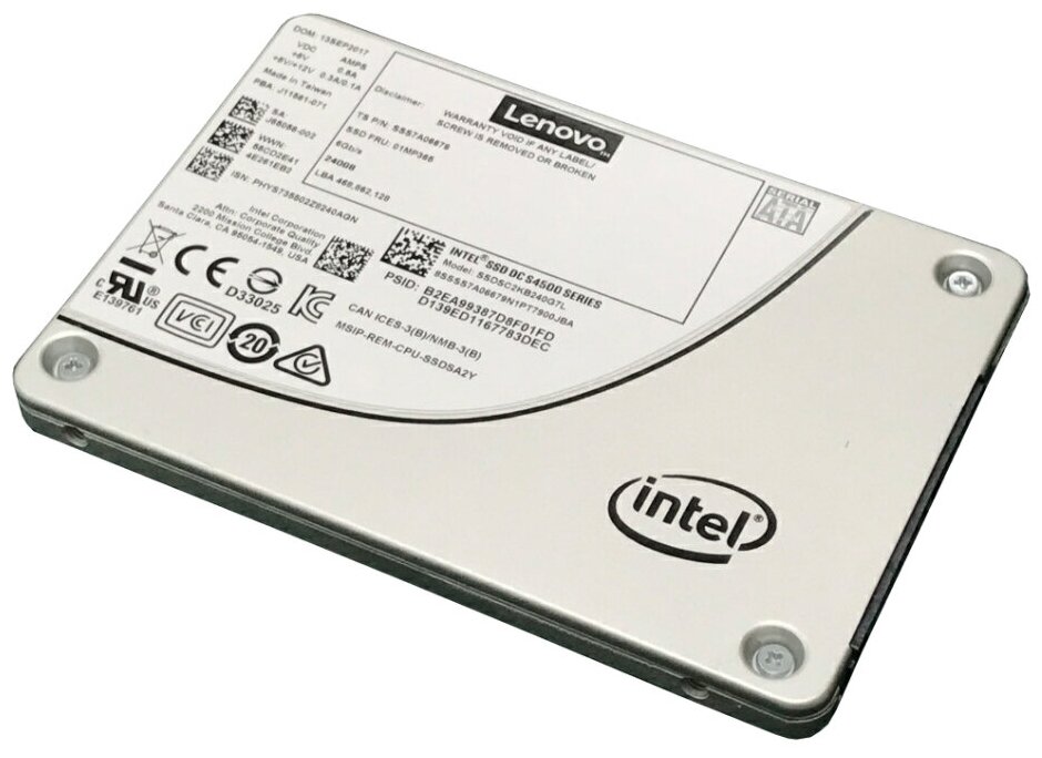 Form factor: 2.5, capacity: 240 GB, purpose: server, connector: SATA, interfaces: SATA 6Gb/s, read speed: 500 MB/s, write speed: 190 MB/s, flash type: TLC 3D NAND, MTBF: 2000000 h
