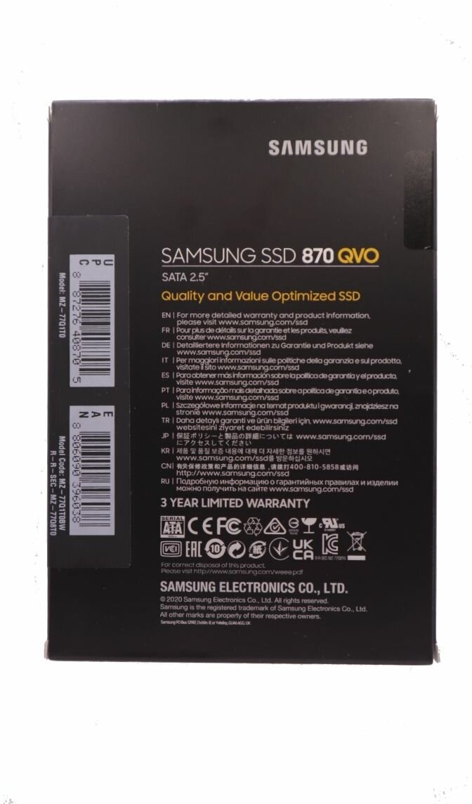 Form factor: 2.5", capacity: 500 GB, purpose: external, laptop, laptop and desktop, gaming, connector: SATA, interfaces: SATA 6Gb/s, read speed: 560 MB/s, write speed: 530 MB/s, Flash type: V-NAND 3-bit MLC, vr