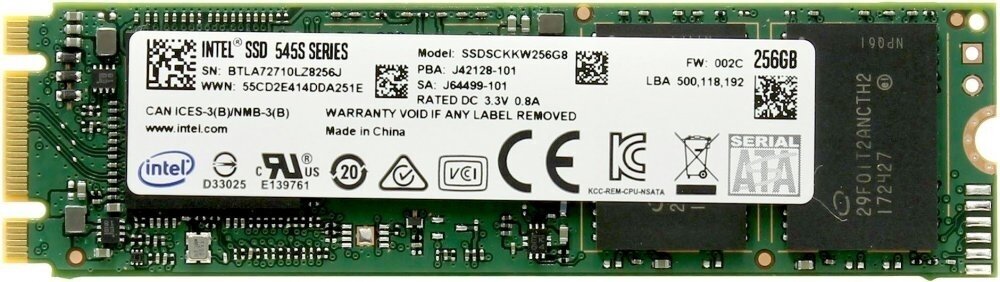 Form factor: M.2 2280, capacity: 256 GB, intended for: laptop and desktop, gaming, connector: M.2, interfaces: SATA 6Gb/s, read speed: 550 MB/s, write speed: 500 MB /s, Flash type: TLC 3D NAND, MTBF: