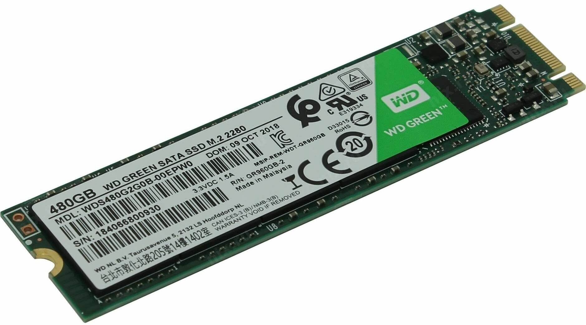 Western Digital WD Green SATA 480GB M.2 Solid State WDS480G2G0B