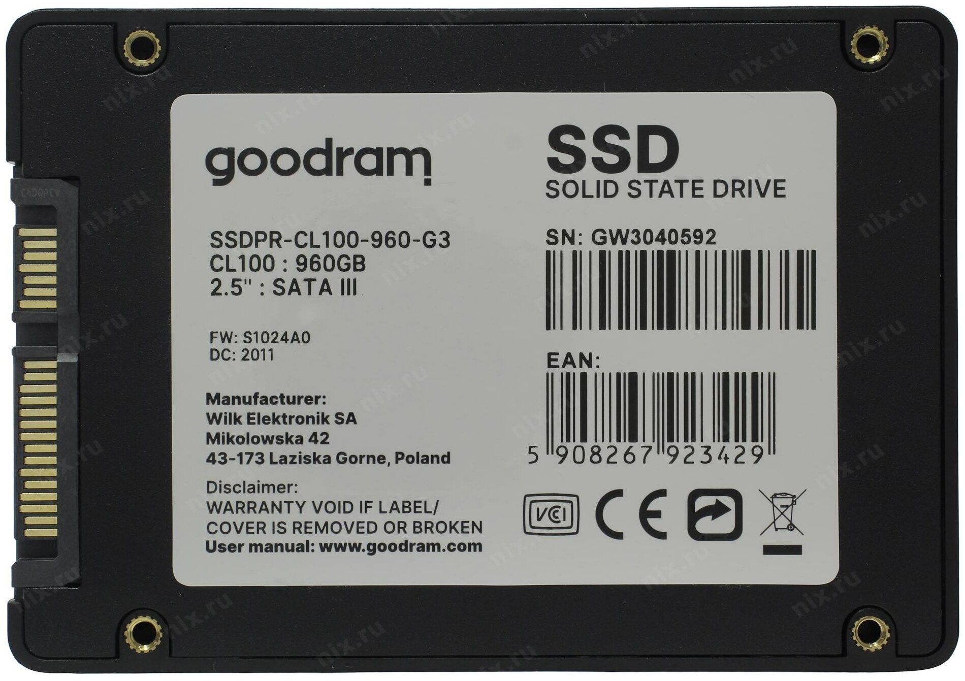 SSD 2.5 Goodram 960Gb CL100 gen.3 SATA3, up to 540/460MBs, 3D TLC, 7mm