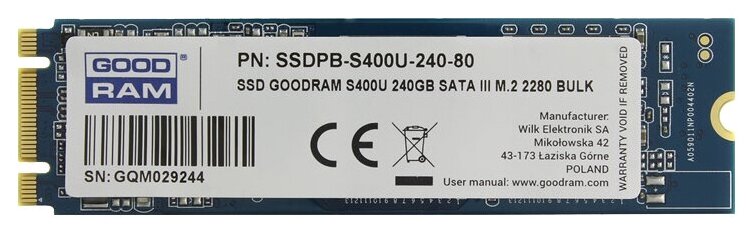 Form factor: M.2 2280, capacity: 240 GB, intended for: laptop and desktop, gaming, interfaces: SATA 6Gb/s, flash type: TLC