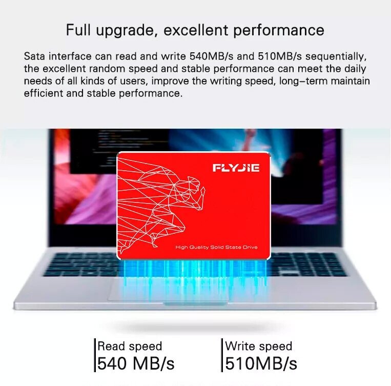 Form factor: 2.5", purpose: laptop and desktop, connector: SATA, interfaces: SATA 6Gb/s, read speed: 540 MB/s, write speed: 510 MB/s, flash type: TLC, time MTBF: 1000000 h