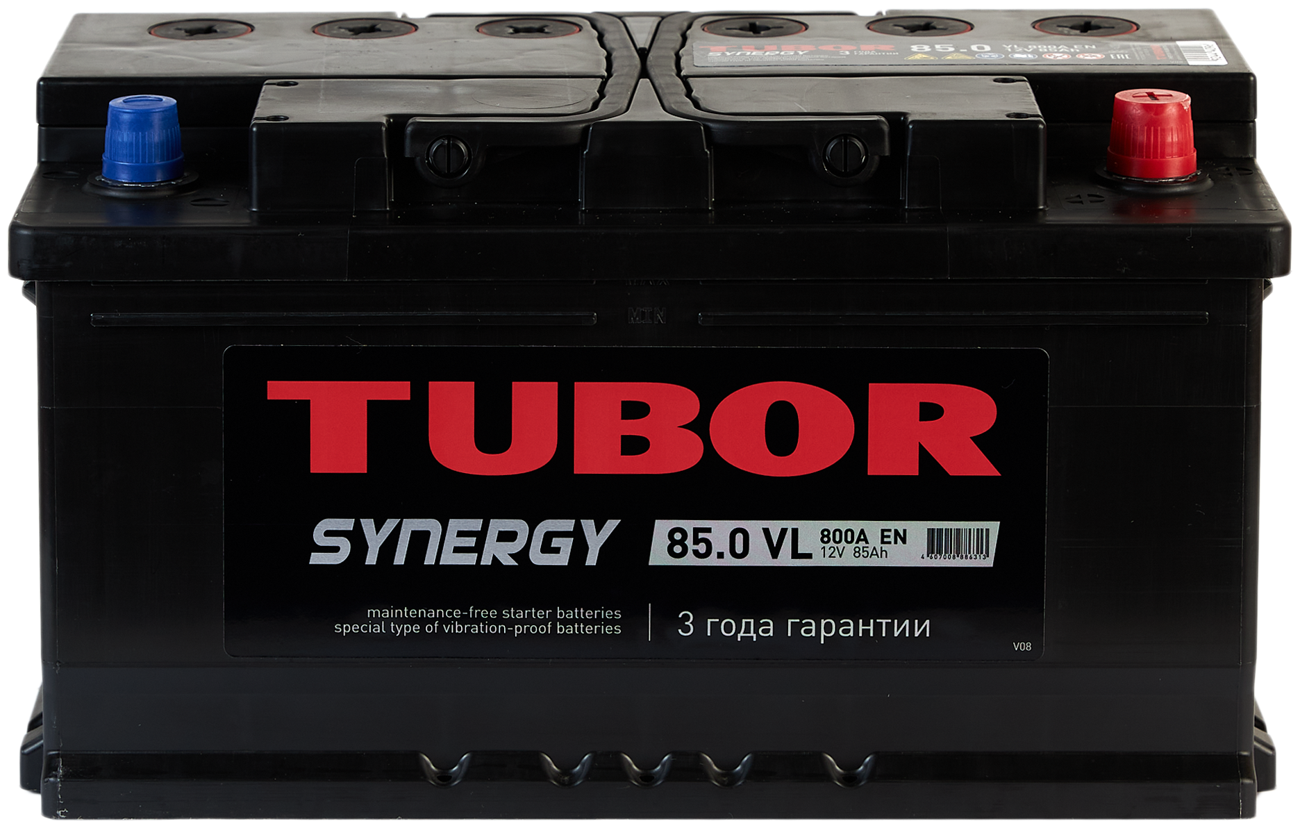 TUBOR Synergy 85 Ah 800A 315/175/175 mm reverse polarity 12 months warranty