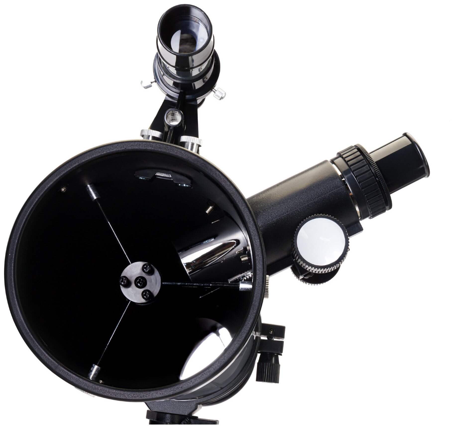 Telescope optical tube, eyepiece SR4mm, eyepiece H12.5mm, eyepiece H20mm. Barlow lens 2x, optical finder 5x24, equatorial mount EQ2, fine movement knobs, counterweight bar, counterweight, mounting ring, aluminum