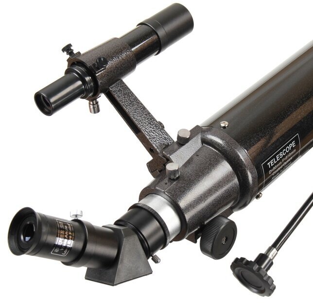 180x90 telescope tube, 25 mm and 10 mm eyepieces, 45° diagonal mirror, 6x30 optical finder scope, AZ3 azimuth mount, tripod