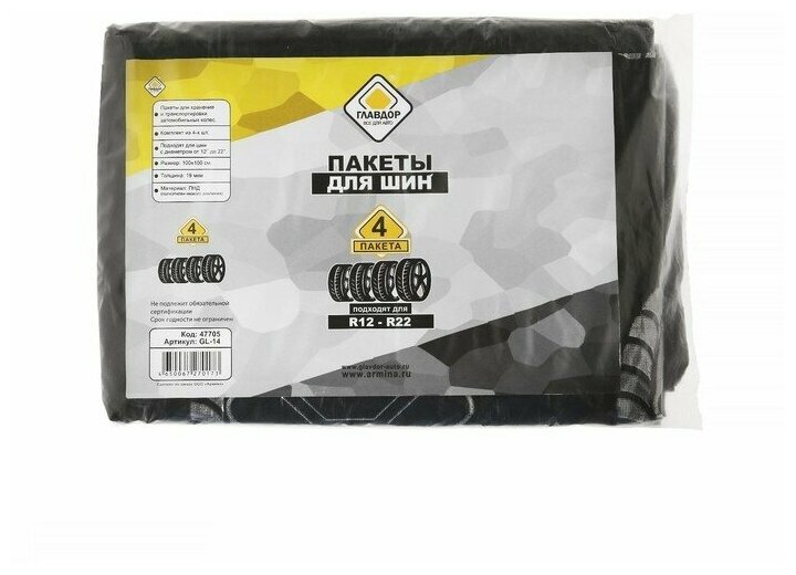 Wheel storage bags GLAVDOR, R12-R22 set of 4 pcs 2538875