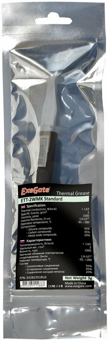Thermal paste, density: 2 g/cm³, operating temperature: -30 °C to 280 °C, thermal conductivity: 1.63 W/m K