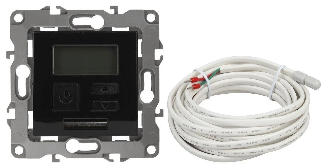 Control type: mechanical, maximum load: 3600 W, minimum temperature: 5 °C, maximum temperature: 40 °C, underfloor heating temperature control, underfloor heating sensor: included, communication type: wired