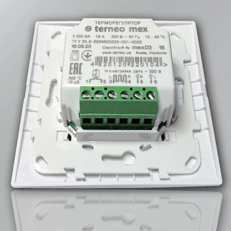 Control type: mechanical, maximum load: 3000 W, minimum temperature: 10 °C, maximum temperature: 40 °C, underfloor heating temperature control, underfloor heating sensor: included, communication type: wired, via
